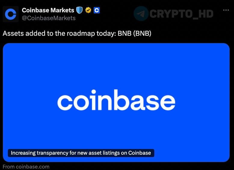 ⬆️ #BNB Биржа Coinbase собирается залистить токен BNB – дорожная карта