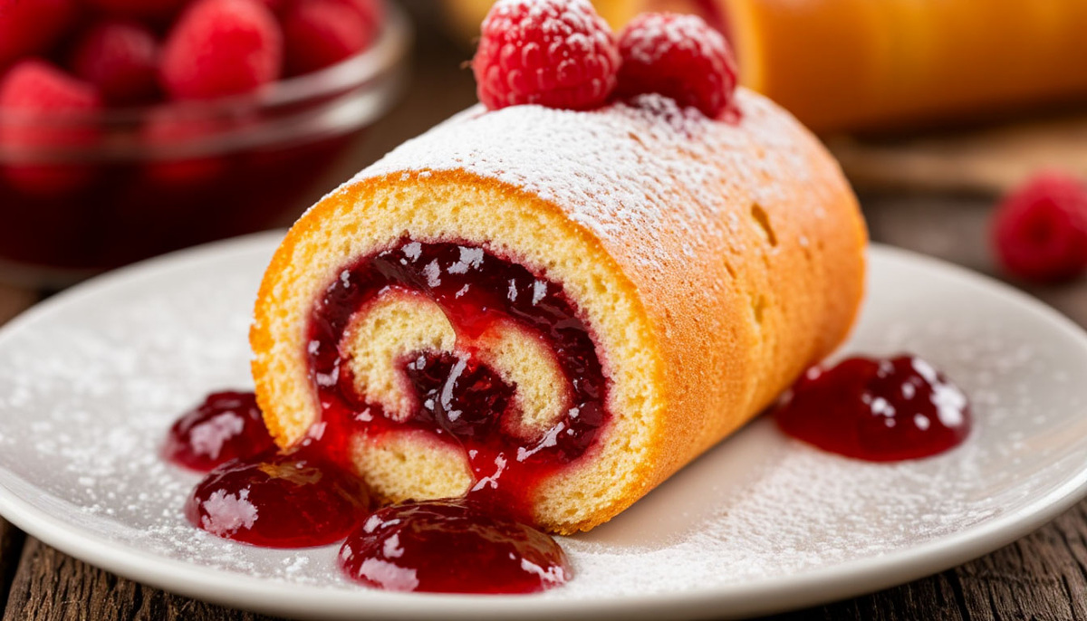 Нежный, словно облако, бисквит, пропитанный лёгким ароматом ванили, оборачивает в себе сладкое сердце из ароматного повидла. Мягкий и воздушный, он тает во рту, оставляя послевкусие домашнего тепла и уютных воспоминаний. Для бисквита: Для начинки: Для украшения (по желанию): 1. Подготовьте форму и духовку: Разогрейте духовку до 180 °C. Застелите противень пергаментом (размер примерно 30×40 см). Бумагу слегка смажьте маслом или сбрызните антипригарным спреем. 2. Приготовьте бисквитное тесто: Отделите белки от желтков. Взбейте белки с щепоткой соли до лёгкой пены, затем постепеннодобавляйте половину сахара (50 г) и взбивайте до устойчивых пиков. В отдельной миске взбейте желтки с оставшимся сахаром и ванильным сахаром до пышной, светлой массы. Аккуратно соедините желтки с белками, перемешивая снизу вверх. Просейте муку (и разрыхлитель, если используете), затем осторожно вмешайте её в тесто лопаткой — не миксером! Готовое тесто должно быть лёгким, воздушным и не слишком густым. 3. Выпечк