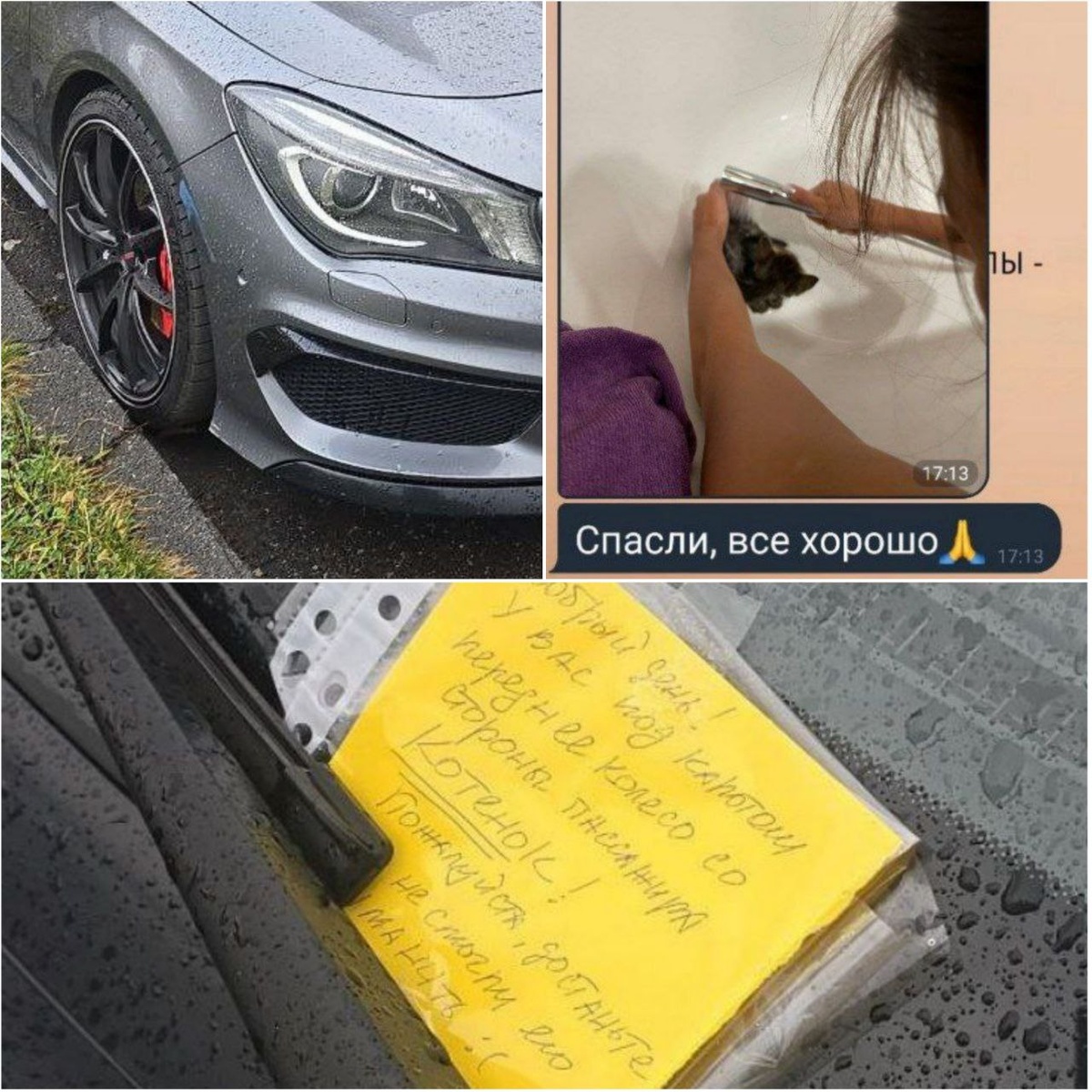 Милая история из ЖК Ярославский в Мытищах. Там жители увидели котенка, который забрался погреться под машину в районе колёсной арки, оставили записку и написали водителю сообщение в Госуслугах. Водитель прочитал, котенка оставил себе 😍 Зоозащитники каждую осень предупреждают: ‼️Водители, пожалуйста, уделите пару минут осмотру авто перед поездкой! Проверьте, не прячется ли кот под капотом, на колёсах, постучите по машине, чтобы кот успел услышать шум и убежать прежде, чем вы заведёте мотор! Этим вы можете спасти чью-то жизнь‼️