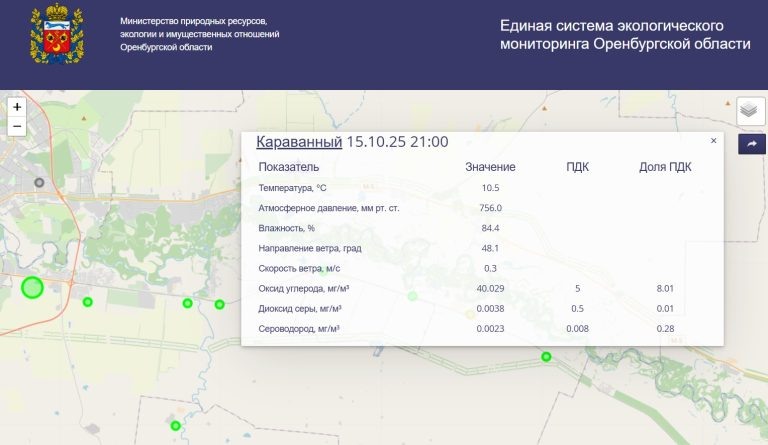 В Оренбургском районе стационарный пост в поселке Караванный зафиксировал превышение ПДК по оксиду углерода. По состоянию на 21:45 в территории превышение составляет 8 ПДК. За час превышение поднялось более чем на 30% — с 5 ПДК. В соседних поселках на стационарных постах превышений нет. Об инцидентах в районе Караванного, где проживают порядка двух тысяч человек, пока не сообщалось. Оксид углерода — опасное вещество, которое нарушает способность крови доставлять кислород к тканям. При отравлении оксидом углерода происходят спазмы сосудов, снижается иммунологическая активность человека. При вдыхании опасных концентраций данный токсичный газ приводит к нарушению работы органов и систем организма.