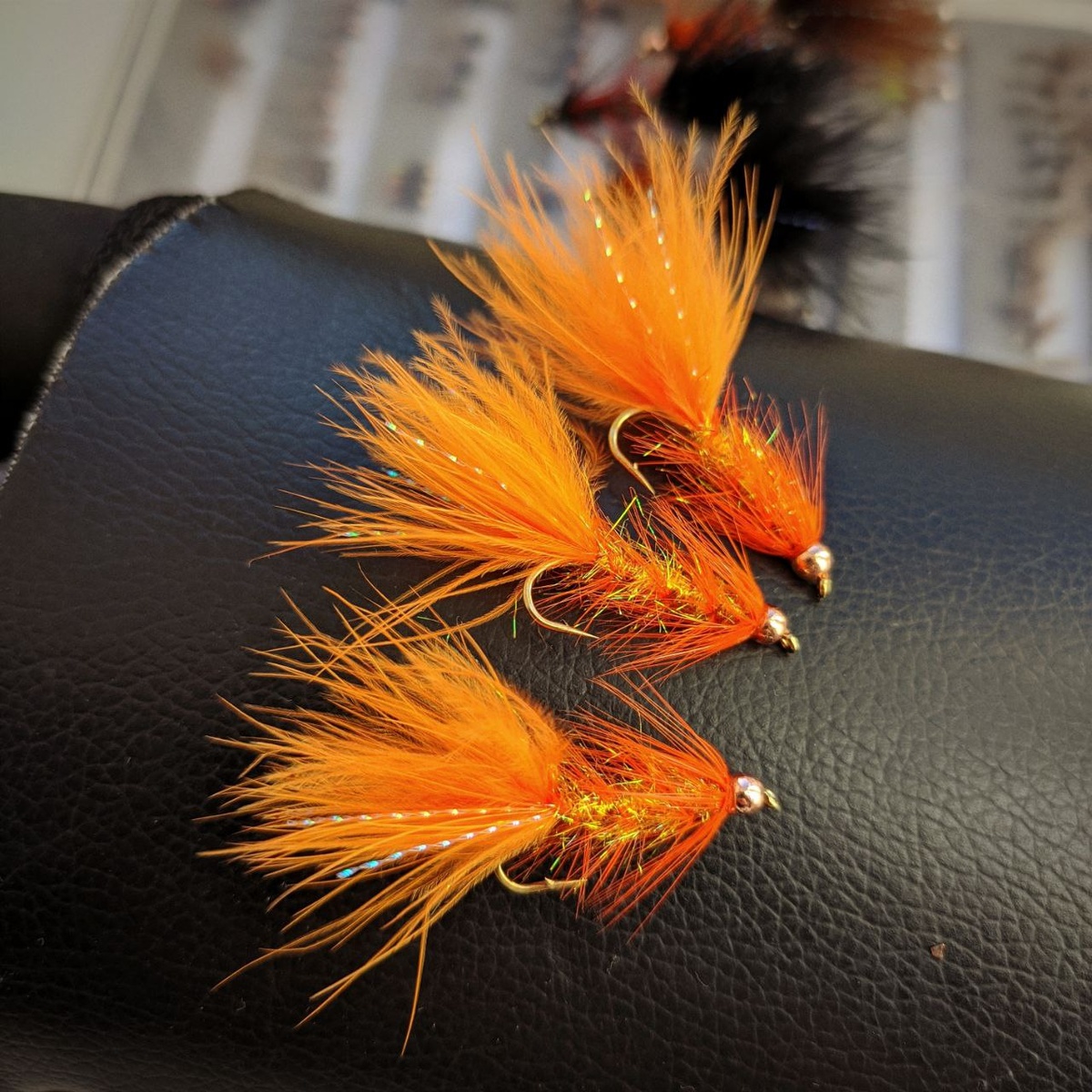 Голец клевал не только на оранжевые мухи, но такие показали себя эффективнее всех. В некоторые периоды он стримеры не брал, собирал нимфы со дна. В такие моменты хорошо работал маленький черный вулик на 10 крючке. У меня из маленьких были только черный и белый вулибаггеры, так вот на белого не поймал вообще ни одной рыбы. У нас еще были оранжевые большие зонкеры, также работали хорошо, но неплохая реакция была и на обычные серые зонкеры с яркими хвостиками. В общем — берет на все, меняйте мухи.