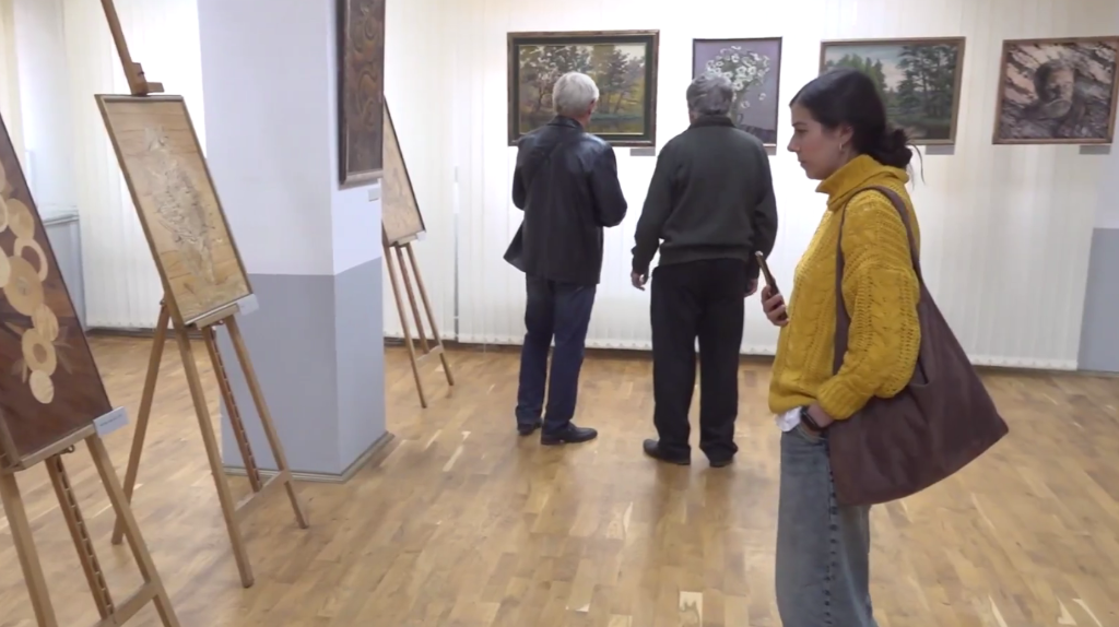 Всего представлено более 30 работ. Есть и классическая живопись, и необычные техники: деревянная мозаика, холодный батик, роспись по ткани.