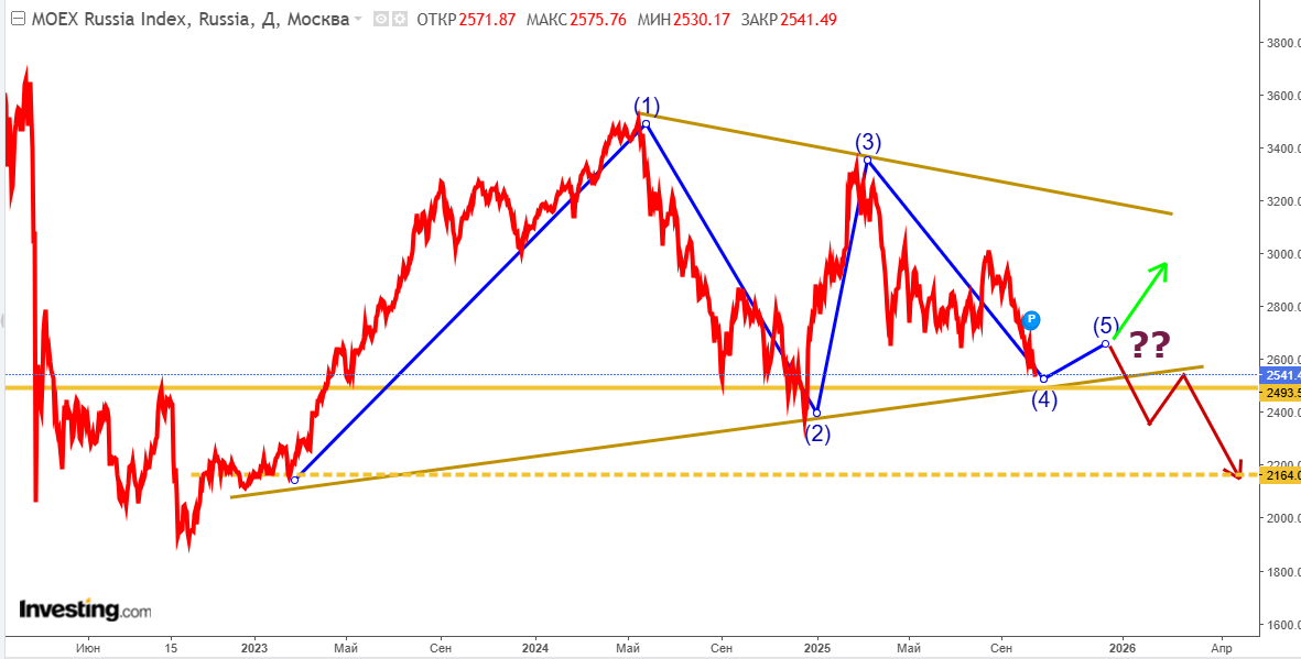 С 2002 Мамба находится в сужающемся диапазоне,или в клине, называйте как хотите. За 2 года 8 мес она нарисовала 4ре положенные по Эллиоту волны, сейчас будет 5я. По сакральному учению я волна весьма вариабельна, но в любом случае она должна быть примерно в направлении 1й волны. То есть в данном случае вверх. На практике текущего момента это означает, что скоро, в ближайшие дни, Мамба пойдёт на отскок вверх. Гипотеза отскока от уровня 2500 подкрепляется тем, что тут сходятся две поддержки: горизонтальный уровень декабрьских лоёв 2024го и восходящая нижняя граница трёхлетнего мегаклина. Откупать отсюда будут активно. Отскок отсюда активно пиарят практически все биржеблогеры. Во всяком случае, идею ухода вниз на уровни 2022 года никто вслух не называет. Отскок - не вопрос. Вопрос - насколько высоко будет отскок и что будет после оного отскока. 5-волновка Эллиота будет исполнена, и Мамба будет вольна двинуть куда захочет. Повинуясь сиюминутным желаниям и геополитическим новостям. Страшно?
