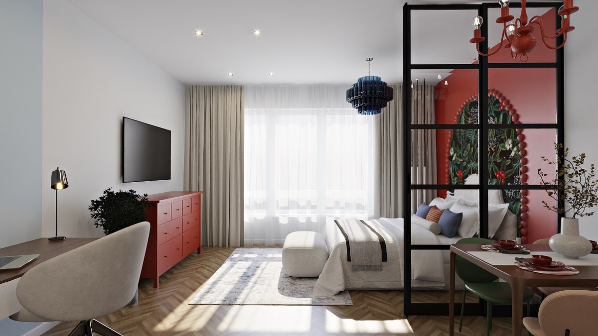 🌟ЖК Союз, м. Ботанический сад Студия 33 м2 для посуточной аренды и заказчица готова была на эксперименты ⬇️ Стоимость сметы после чистового ремонта — 1 млн 790 тыс руб с учетом комплектации и всех работ по ней Было принято решение — максимально выделить объект на рынке, думаю, это получилось) Студия в русском стиле с яркими акцентами точно привлечет внимание большой целевой аудитории! А мой вывод по окончанию проекта всегда на всех объектах один — 💱Я БЫ ТУТ ЖИЛА💱 #кейсы