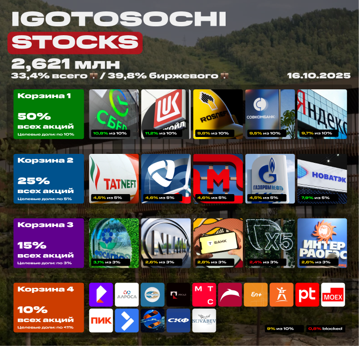 💼 Мой портфель акций на 16 октября 2025. 2,621 млн рублей. Покупки на обвале, увеличение пассивного дохода