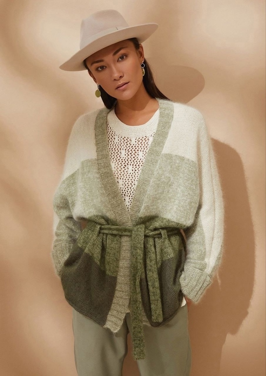 Hаконец-то мы в полной мере наслаждаемся осенью с ее яркой листвой и богатым урожаем на столе! Она побуждает нас к созданию моделей, излучающих особую энергию и отражающих характер наступившего сезона. Это чудесное, вдохновляющее время года приглашает поэкспериментировать, например, с необычными сочетаниями: сочный оранжевый добавит модной свежести бежево-песочным тонам, а магия опалово-зеленого и цвета морской волны позволит по-другому взглянуть на уютный теплый трикотаж с разнообразными узорами.Наверняка и у вас есть собственная коллекция подобных сокровищ, что ждут не дождутся своего звездного часа! Смотрим, наслаждаемся, вдохновляется! Кардиган "Juniper" в градиентную полоску свободного силуэта идеально дополнит ваш повседневный осенний гардероб. Кардиган, разработанный Лизой Ричардсон, связан из пряжи Summerlite 4-ply и Kidsilk Haze двойной вязки. Он имеет обтачку на талии, резинку по краям и высокие манжеты. Джемпер от Lana Grossa, связанный изнаночной гладью с дорожками и
