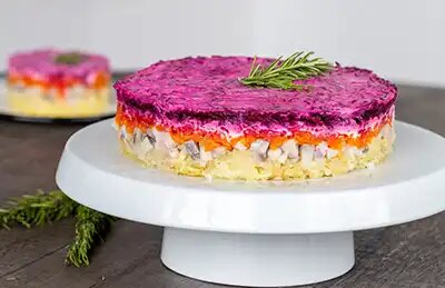 Салат Селедка под шубой - классическое русское блюдо, состоящее из красиво уложенных слоёв маринованной сельди и корнеплодов. Традиционно это новогоднее блюдо, но, будем честны, оно вкусное в любое время года. Вот рецепт праздничного салата. Продукты необходимые для его приготовления: