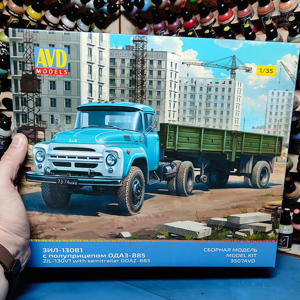 ЗИЛ-130В1 с полуприцепом ОДАЗ-885 от AVD Models 1/35. Что в коробке?