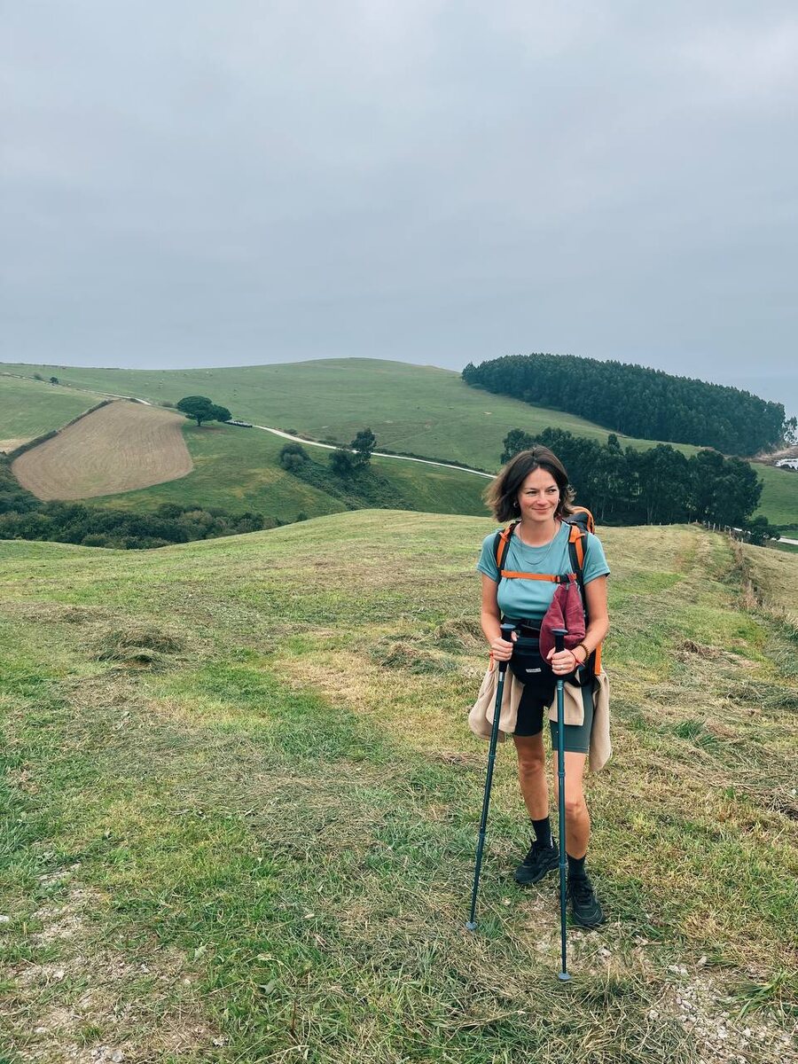 Путевые #каминозаметки Комильяс → Коломбрес 🥾 Из интересных наблюдений дня - обед и ужин в Испании строго по расписанию. Которое нам не подходит 🤷🏻♀️ Ужин с 20:00, то есть в 18:00 горячую еду , кроме картошки фри, не найти. А в 20:00 я уже спать хочу. Обед строго в 13:00 , и в 11:30 , когда мы зашли в единственный на пути город, поесть нереально. По отзывам хотелось зайти в один ресторан, когда я дотащила свое тело к дверям, готовая в целом ждать, на двери висела табличка : vacaciones = vacation = отпуск 😳 До 5 ноября!!!!! 😳😳😳😳😳😳😳 Как это возможно?! Какой такой вакасьйон на три недели у общепита в центре города?!!! Моя российская ментальность отказывается это понимать. 🥾 К концу четвертого дня пути у меня пока полная гармония. Все вот эти слипшиеся от пота глаза, повороты не туда, истерический смех от усталости и мир на ладони - абсолютно моя история!!! Люблю!