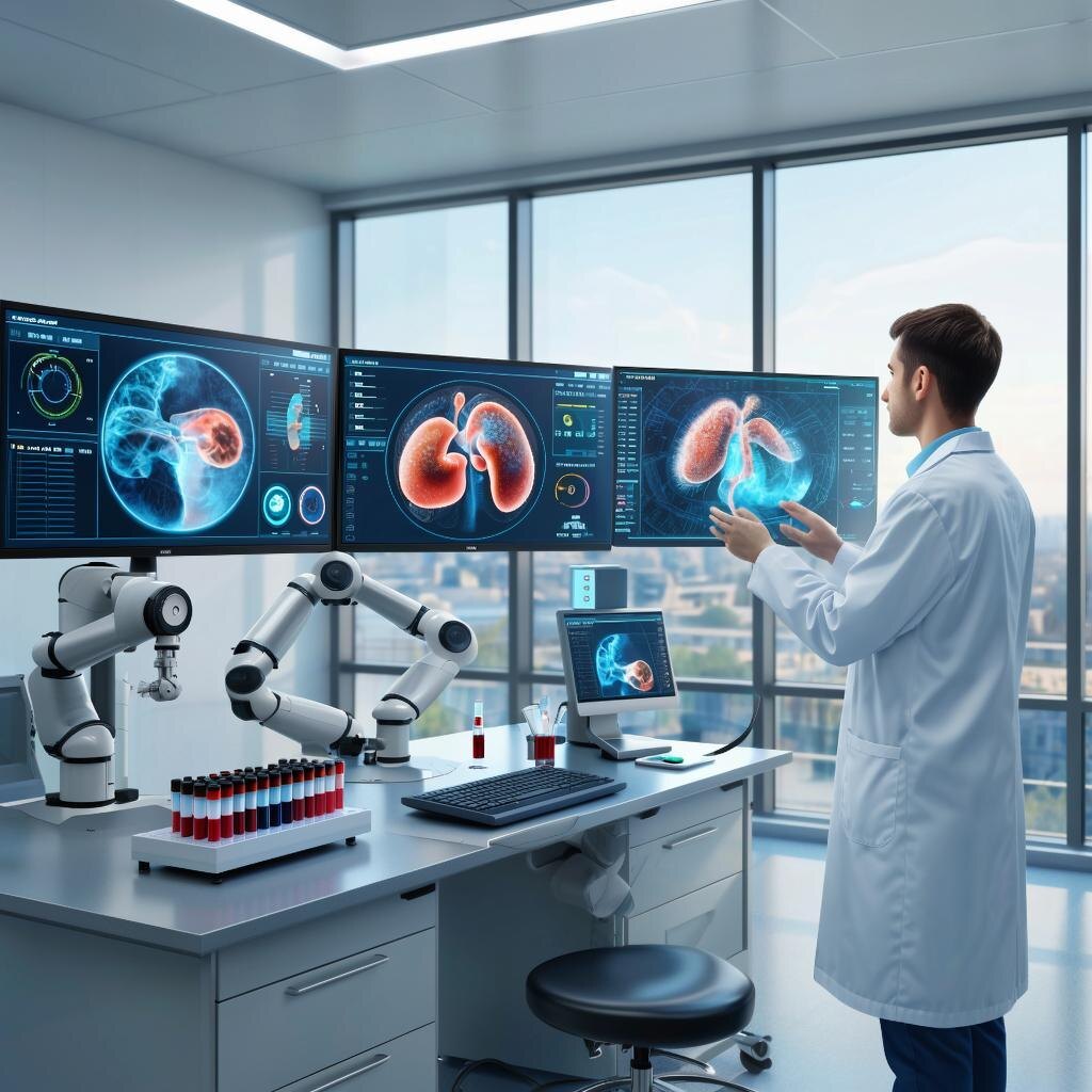 Искусственный интеллект (ИИ) постепенно становится важной частью медицины — от диагностики до лечения. Сегодня влияние технологий на здоровье ощущается сильнее, чем когда-либо. В этой статье расскажу, как ИИ меняет медицину и что нам ждать в ближайшем будущем. ИИ помогает быстрее ставить диагнозы. Раньше врачи тратили часы на анализ снимков и данных пациентов, теперь же ИИ может обрабатывать гигабайты информации за секунды. Например, алгоритмы умеют распознавать изменения на рентгеновских снимках или МРТ, которые порой сложно заметить человеку. Это сокращает время диагностики и повышает точность. Персональный подход к лечению. ИИ анализирует не только симптомы, но и данные о генах, образе жизни и даже питании пациента. Благодаря этому можно создавать индивидуальные планы лечения. Это особенно важно при хронических заболеваниях, где каждый случай уникален. Новые возможности в хирургии. ИИ помогает хирургам заранее планировать операции, мо