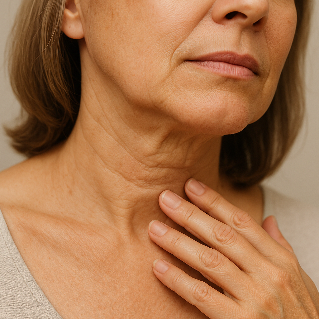Для ухода за кожей шеи рекомендуется использовать специализированные средства, так как кожа в этой зоне тоньше, суше и имеет меньше сальных желез, чем на лице.