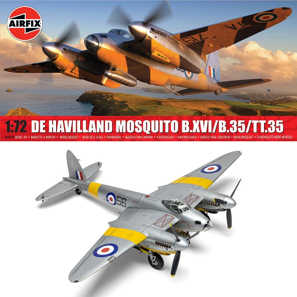 Airfix из Великобритании анонсировала модель нового варианта "Москито" в масштабе 1/72: De Havilland Mosquito B.XVI/B.35/TT.35 (каталожный номер A04070)