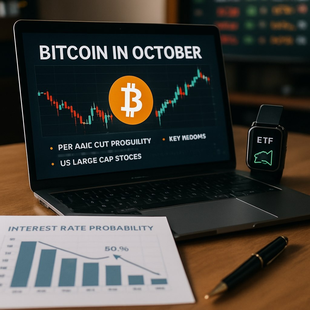 📊 Ожидания по октябрю для биткоина зависят от вероятности снижения процентной ставки ФРС, притока средств в ETF на BTC и динамики крупных акций США.