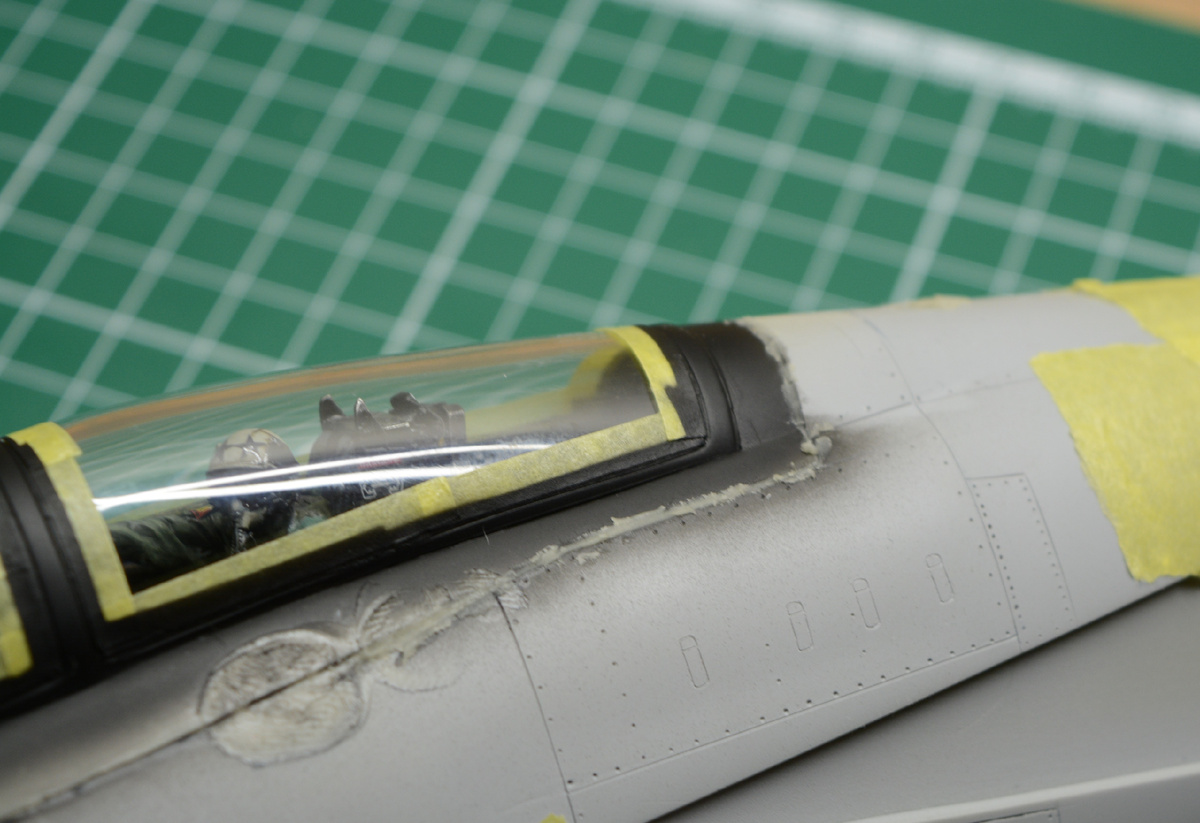 Всем привет. Продолжаю проект по постройке модели самолёта F-14D в масштабе 1/32. Расскажу чем занимался крайние 2 недели. Чтобы точно закончить носовую часть самолёта, было необходимо установить на своё место фонарь. Занятие не хитрое, но наличие смоляной кабины вызвало определённые сложности. На установку фонаря понадобилось 3 дня последовательной склейки с просушкой. Образовавшиеся щели и ступеньки были зашпатлёваны шпатлёвкой на основе ЦА и двухкомпонентной шпатлёвкой. Далее всё вышкурил и нарезал расшивку. Далее добавил расшивки на носовой части и элементы системы обдува козырька (если это не она, поправьте). Отдельно отмечу превосходную стыковку конуса с фюзеляжем. 10/10. Ну и вот такая внушительных размеров носовая часть получилась. Далее занялся основными нишами шасси. Для установки в них стоек от ResKit необходимо зачистить и зашпатлевать родные крепеления. На фюзеляжной части необходимо перенести стенку ближе. С покраской не заморачивался. Ниши из набора практически не имеют
