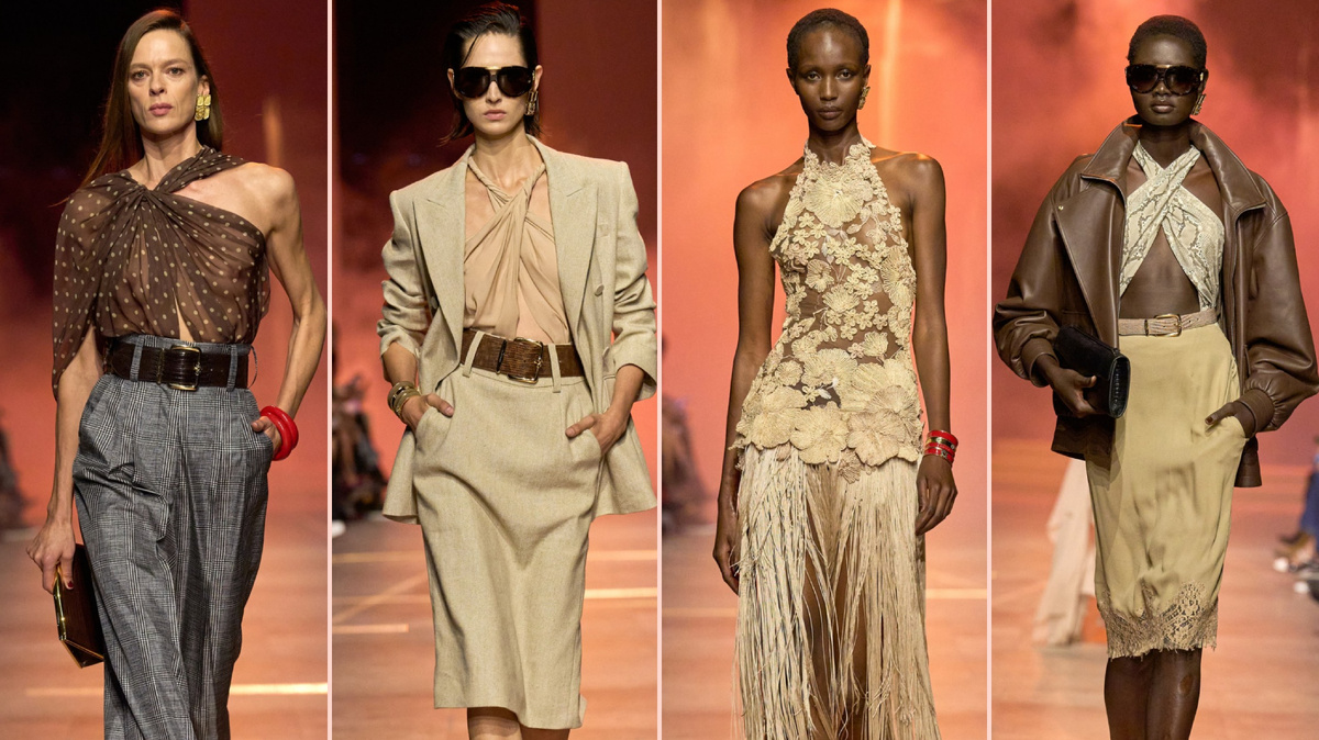 Стратегический поворот Сааба в сторону усиления категории дневной одежды привел к появлению юбки-карандаш и пальто из питона. Весенняя коллекция Эли Сааба знаменует собой эволюцию эстетики ливанского дизайнера, а также его стратегического направления. Сааб, наиболее известный своими роскошными вечерними нарядами и нарядами для красных дорожек, весной 2026 года переключил внимание на привлекательные, спортивные вещи, представив коллекцию, в которой прозвучали все ноты 80-х годов, которые только можно пожелать. Юбки-карандаш с высокой талией, блейзеры с выраженными плечами, колготки в горошек, тренчи из питона и клетка принца Уэльского. Все это спускалось с подиума быстро и яростно под пульсирующий ритм. Не было видно ни одного наряда невесты. Карин Ройтфельд создает стилистику показов Сааба с прошлого года, начиная с его юбилейной феерии в Саудовской Аравии, состоявшей из 300 с лишним образов, в ноябре. Здесь чувствовалось ее влияние: силуэт практически взят прямо
