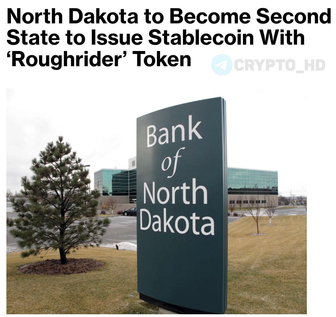 🎉🇺🇸 Штат Северная Дакота планирует запустить собственный стейблкоин в 2026 году – Bloomberg Банк Северной Дакоты реализует проект «Roughrider Coin» совместно с Fiserv, Paxos и Circle. Ранее: штат Вайоминг Crypto Headlines