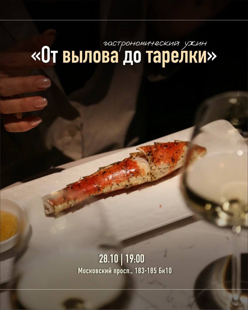 Друзья, мы рады пригласить вас на гастрономический ужин «От вылова до тарелки», который состоится 28 октября в 19:00 в новом