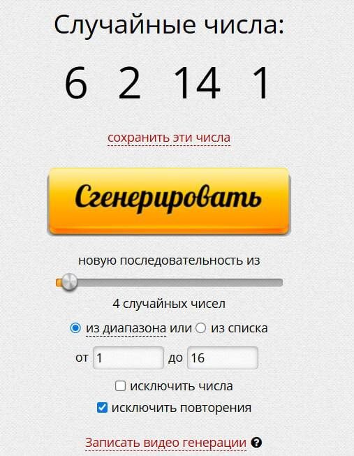 У нас 4 подарка и 4 числа которые определил рандомайзер: 6, 2, 14, 1