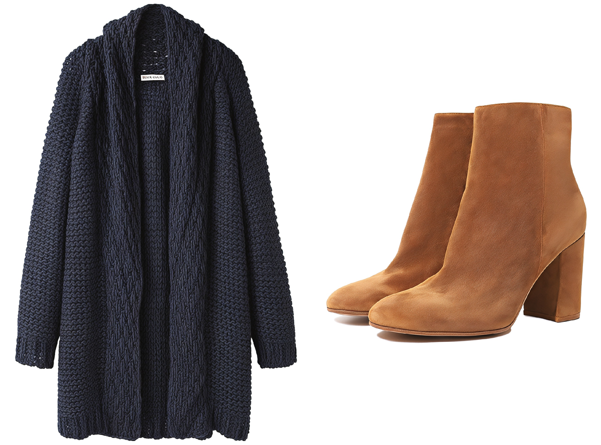 Обратная ситуация: базовый наряд – бежевый кардиган, прямые брюки нейтрального оттенка. Здесь обувь может стать акцентом. Терракотовые замшевые ботильоны или ботинки с интересной фактурой оживят образ, добавят индивидуальности. Главное – не переборщить с другими акцентами.