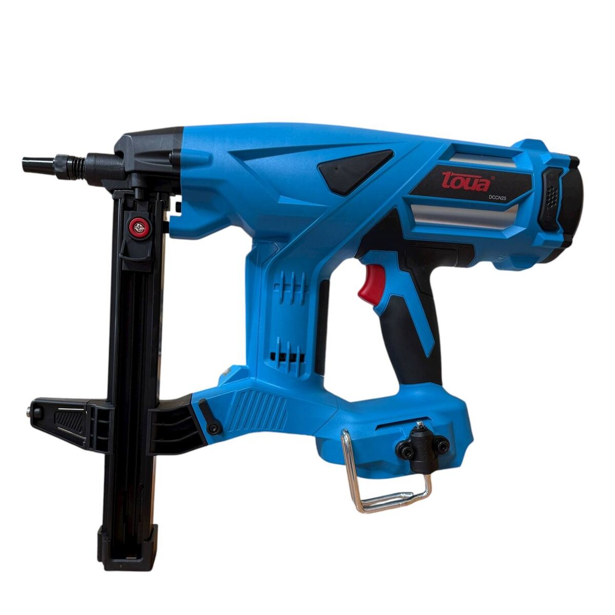Новый аккумуляторный нейлер по бетону до 25мм Toua DCCN25. По сути это самый популярный размер гвоздей под клипсы, скобы. В комплекте сразу идут носы узкие, магнитные, общестроительный.