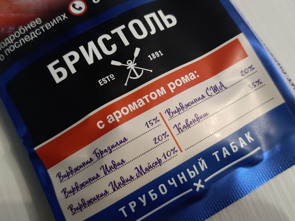 На днях приобрел в Супертабаке трубочную смесь «Бристоль» с ароматом рома. О ней и пойдет сегодня повествование. Внимание! Данная публикация предназначена для совершеннолетних граждан – прежде всего, для тех, кто курит. Я не рекламирую табачную продукцию и продавцов, и не пропагандирую курение. Записка основана на личном мнении и носит ознакомительный характер. Курение вредит вашему здоровью! Наверняка, многие, как и я, покупают трубочный табак не только для того, чтобы использовать его по прямому назначению – для трубки, но и для применения в качестве приправы для сигаретных смесей. Чаще всего я пользовался табаками для блендинга из линейки «Стивенсон». Но периодически покупал и «Бристоль». Обе эти марки трубочных смесей производит Погарская сигаретно-сигарная фабрика. И в целом продукция этой компании меня устраивает. Почему я купил именно «Бристоль» с ароматом рома? Сейчас поясню. В этот раз в качестве пряности для мешек я хотел приобрести Кавендиш. Обычно он был в линейке «Стивенсо