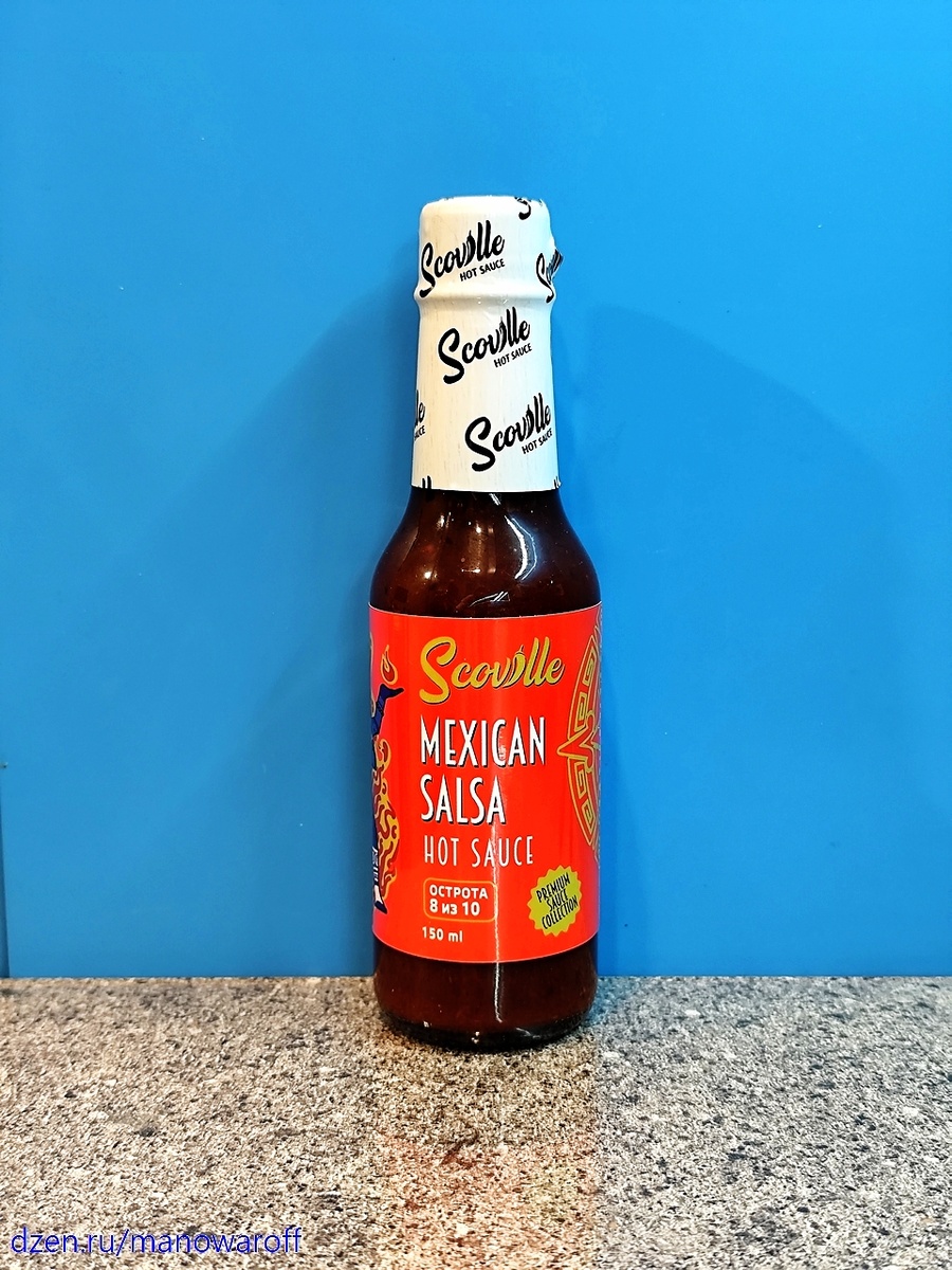 Сегодня попробуем острый соус бренда Scoville. Как видите, соус в мексиканском стиле. Производитель позиционирует данный соус как экстра острый. В принципе, такое может быть, поскольку в составе присутствует перец Каролина Рипер в двух видах - мэш и молотый сушеный. Причем, далеко не на последнем месте. Так что некоторая надежда на остроту есть. Кстати, о составе: Вода питьевая(очищенная), Томатная паста, Перец халапеньо красный маринованный (Перец халапеньо красный нарезанный, вода, соль, регулятор кислотности (уксусная кислота, лимонная кислота), кальция хлорид), Пюре ананаса с/м, Мэш Перца Каролина рипер (перец каролина рипер, уксус, соль), Чернослив, Соевый соус (вода, соевые бобы, соль, мука пшеничная, сорбат калия), Патока мальтозная, Перец чипотле, Сок лайма свежевыжатый, Ароматизатор жидкий дым, Имбирь свежий (натертый, измельченный), Сахар тростниковый, Паприка красная копченая (молотая), Лук (сушеный, молотый), Перец душистый, Перец черный, Кориандр, Перец Каролина (молотый с