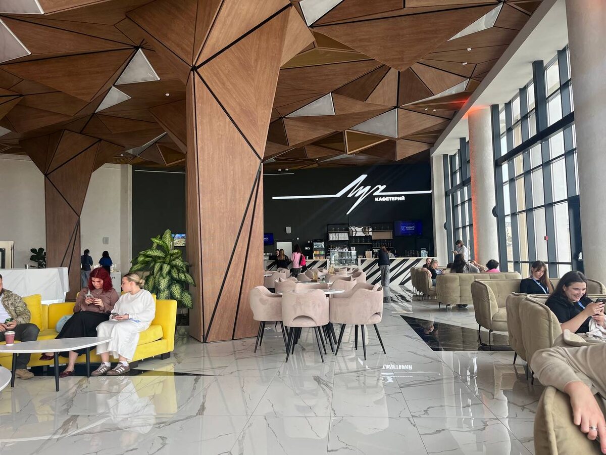Духоты пост. В гостевом здании где находится ресепшен есть кафетерий Луч. Леттеринг логотип создан с нарушением логики письма. Правильно чередование штрихов - Тонкий, Широкий, тонкий, широкий… Здесь же - широкий, тонкий, тонкий, широкий, тонкий, тонкий. В леттеринге нет строгих правил и все возможно в рамках здравого смысла и обоснованности. Здесь его нет. Еще из недоработок - межбуквенное пространство между У и Ч сильно больше.