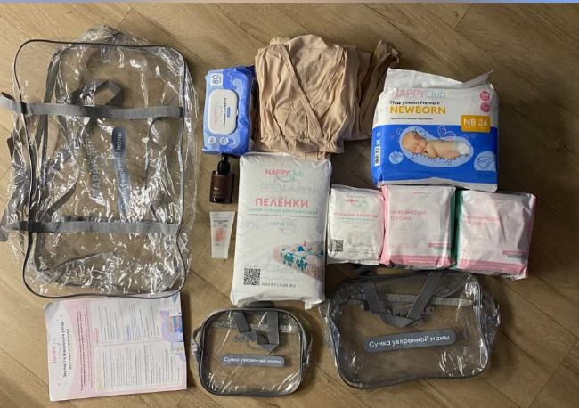 - Трусы гигиенические 10 шт - есть в наборе с сумкой (но мне вообще не зашли - это парник для гениталий, лучше роддомовская простынка или бумажная салфетка Zewa или Yokosun, положенная в обычные хб-трусы слипы (5-10шт) которые не жалко запачкать кровью и постирать, или лучше заказать многоразовые хлопковые прокладки)