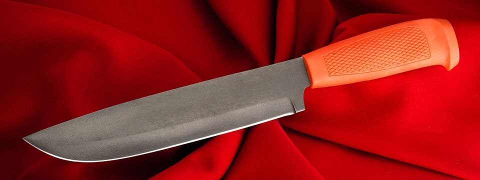 Нож "Полярник-2", клинок сталь Х12МФ, рукоять резинопластик (цвет оранжевый