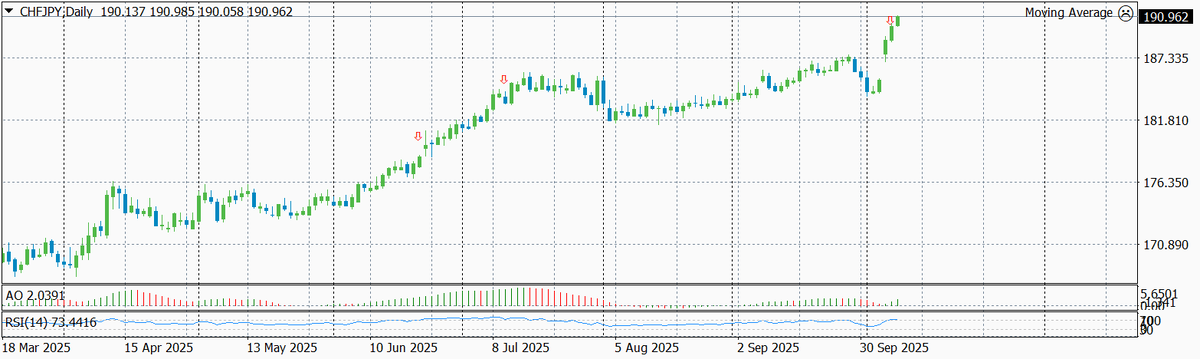 Усиливаем шорт валютных пар CHF-JPY и EUR-JPY от текущих уровней (08.10.2025)