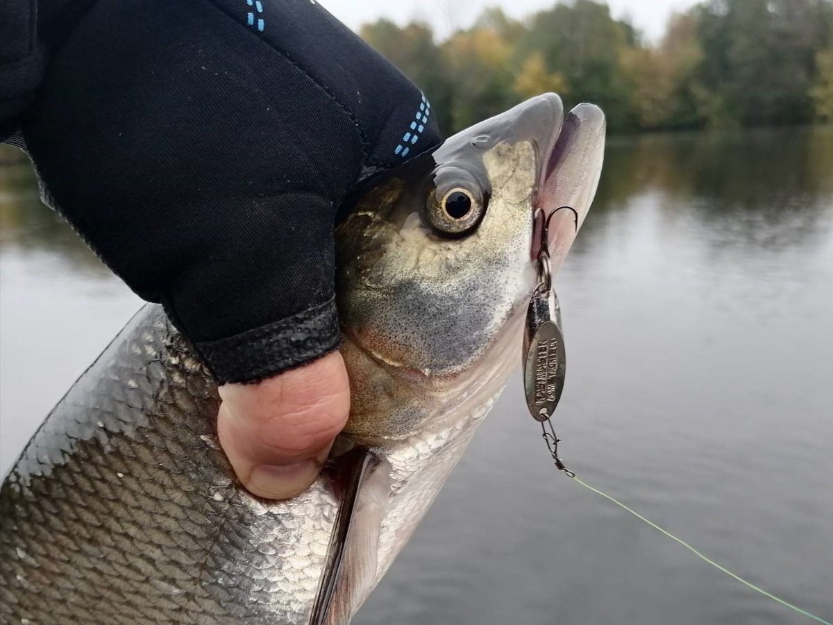 Какого цвета блесны — классические серебристые или цветные — лучше работают по жереху осенью? Опытом делится рыболов из Нижнего Новгорода Даниил Шерстянников. Осенью наряду с ловлей самой разной рыбы самыми разными спиннинговыми техниками я посвятил немало времени жереху. Лидером среди многочисленных приманок вновь стал Acme Kastmaster. Но не всегдашний фаворит весом 7 граммов, а его младший брат весом всего 3,5 грамма. Жерех в сентябре и октябре оказался настолько капризным, что явно предпочитал самую мелкую из всех возможных приманок богатого арсенала. Можно предположить, что маленький Кастмастер ближе всего к кормовому объекту жереха — тюльке. В любом случае статистика оказалась сильно в пользу именно этой приманки. Проводка чаще работала равномерная, средняя по скорости. Всплеск жереха, точный заброс, неспешно крутим ручку катушки — есть! Примерно так выглядели многочисленные поимки. Но одна из них запомнилась особо. Лодка находилась в дрейфе, когда заметил у прибрежной травки како