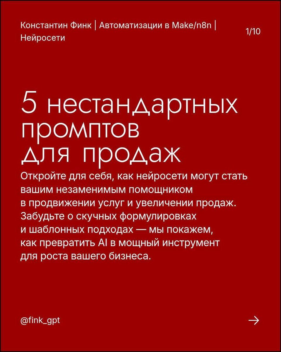 ТОП-5 нестандартный промптов для продаж и продвижения ❤️ Забирайте и пользуйтесь! В комментариях можете поделиться своими промптами, которые вам нравится использовать (необязательно для продаж или продвижения 😉), устроим обмен промтпами!