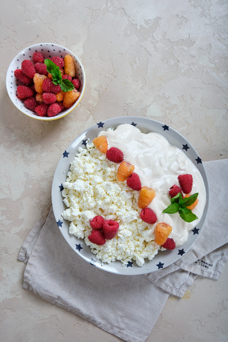 - ПП-десерты и смузи. Обезжиренный творог — отличный источник белка без лишних калорий.