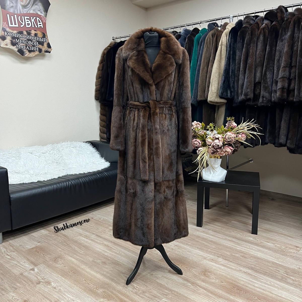 ☑️Норковая шуба, красивый соболиный темно-ореховый оттенок, классическая модель- пальто, сзади шлица, воротник английский, длина maxi, в отличном состоянии, от бренда «Меха Екатерина».
