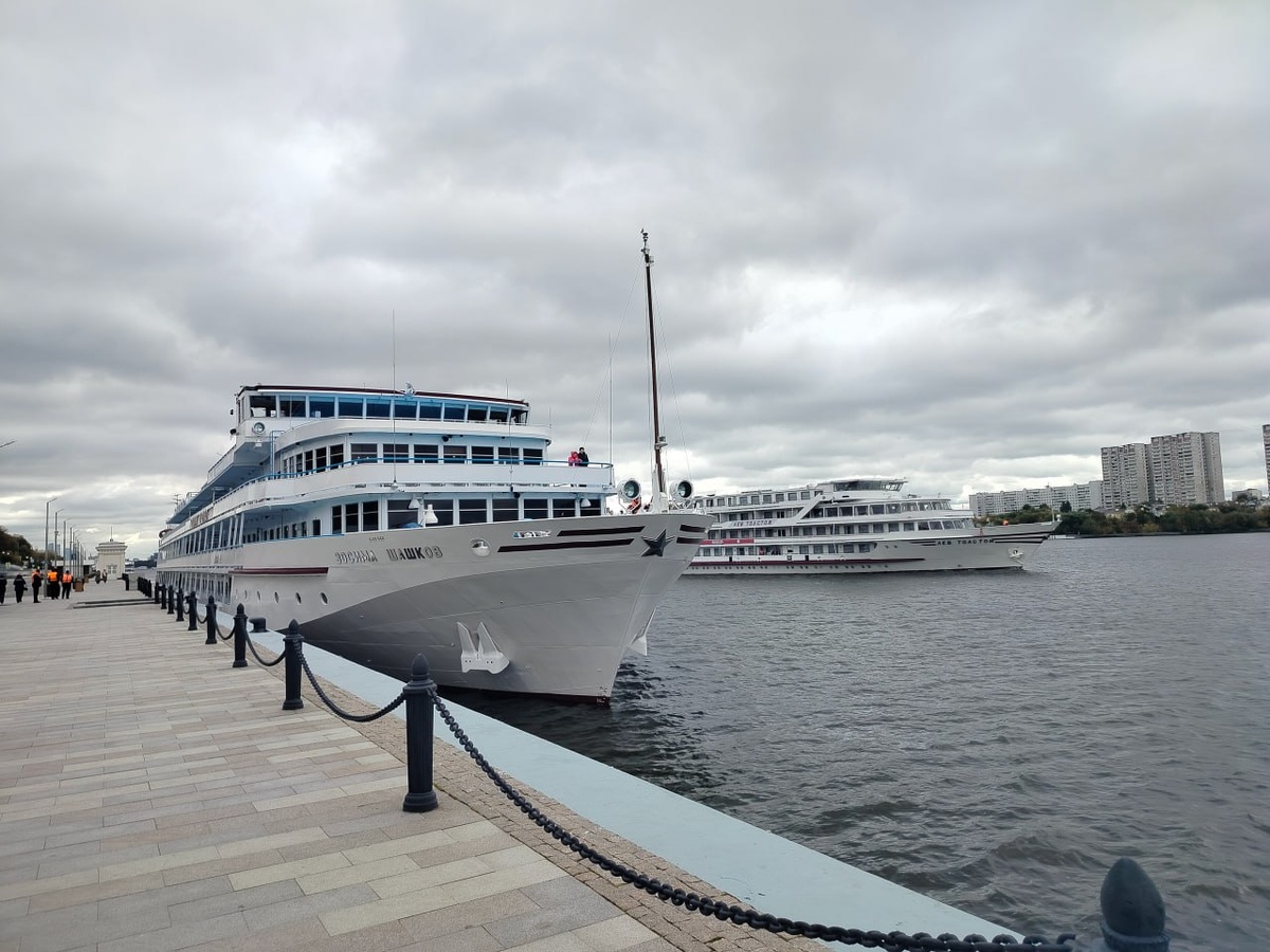 Пассажирские теплоходы ЗОСИМА ШАШКОВ и ЛЕВ ТОЛСТОЙ на Северном речном вокзале в Москве⚓️ За классное фото спасибо Андрею Кругликову👍
