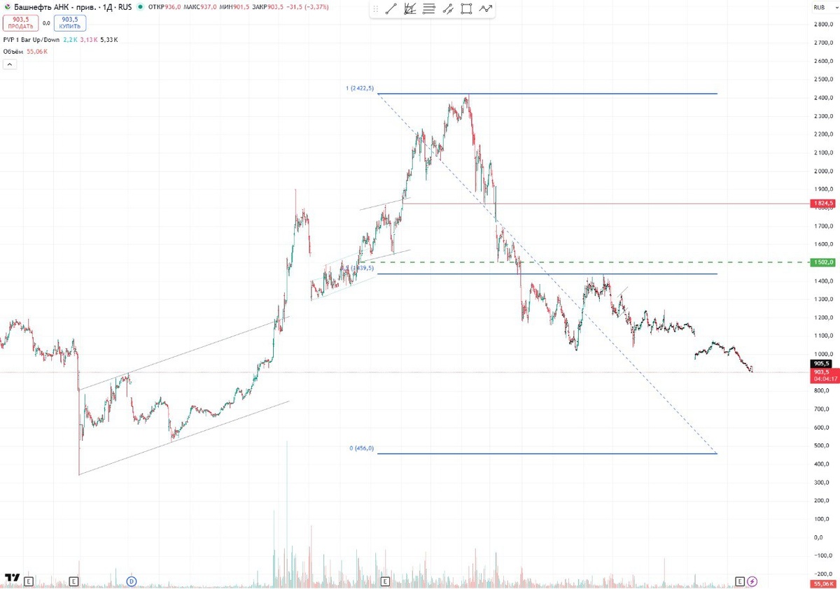 📉 На графике сформирована модель с целью 456. Это не значит, что мы обязательно туда пойдём, но иметь её в виду необходимо.