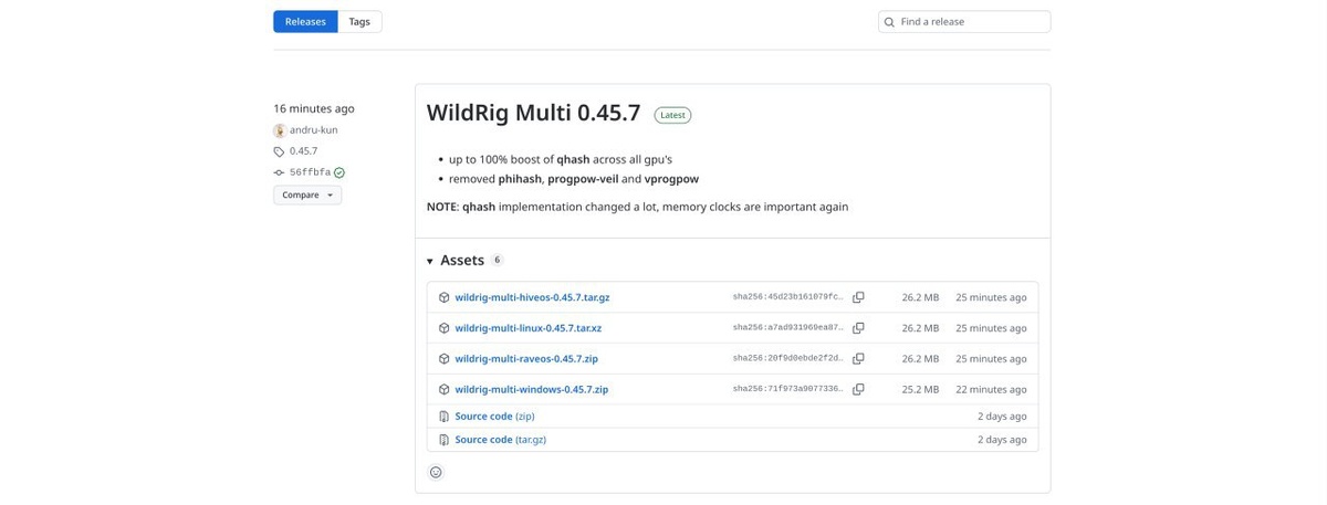 WildRig Multi 0.45.7 — До 100% прироста qhash на всех графических процессорах — Удалены phihash , progpow-veil и vprogpow ПРИМЕЧАНИЕ : реализация qhash сильно изменилась, тактовая частота памяти снова важна. Скачать