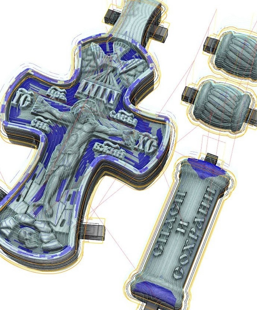 Вот как выглядит модель креста, когда мы делаем G-код для наших станков...