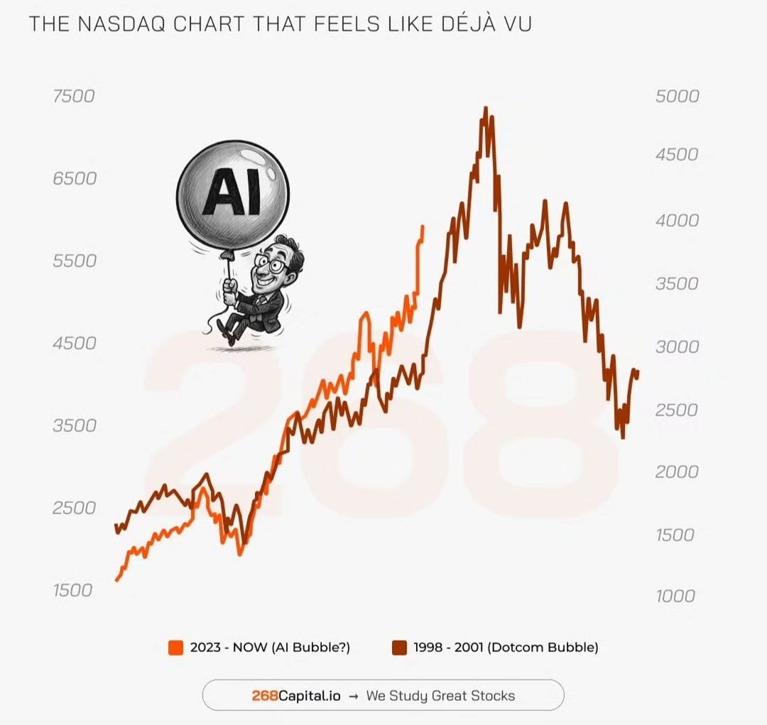 Потенциальный пузырь ИИ vs. пузырь доткомов. Похоже, что скоро нас ждёт разочарование.