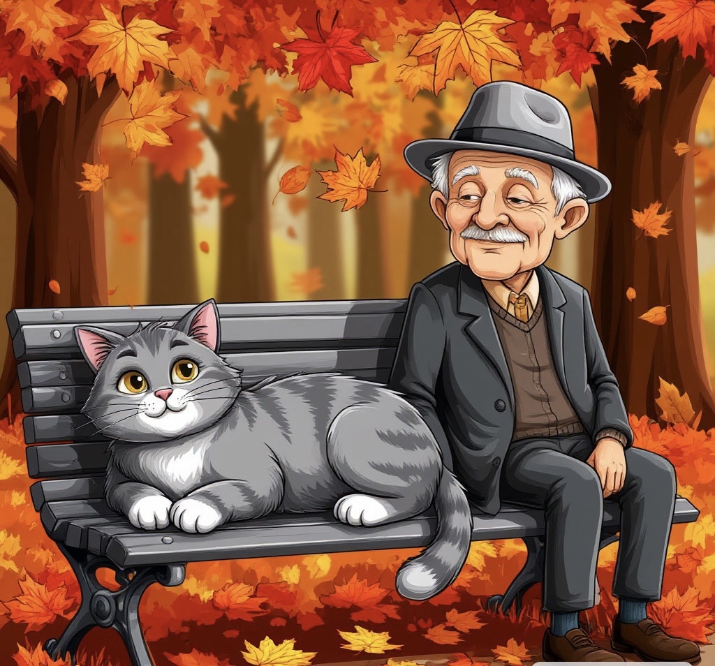 Небо серое, серый рассвет, Облака словно серые птицы летят. Серый кот, возвращаясь устало С ночного свиданья, Лёг на серую лавку, что-то Шикнул и сразу уснул. Рядом дедушка в серой Поношенной шляпе и таком же плаще Примостился, погладил соседа По взъерошенной шубке. Громким возгласом вскрикнул: « Что за хмурое утро, Где лазурный рассвет, И куда ветер солнце унёс? Хохотнула в ответ ему Рыжая осень: « Поищи его в желтой листве.. Клен тихонько тряхнул Огненно-красным нарядом.. Дед и кот, улыбаясь на эту Картину, потянулись блаженно… ЛЯПОТА…. Муркнул кот… Мур-мур-мур. Крякнул дед… Улыбаемся и радуемся каждому дню . Несмотря ни на что!