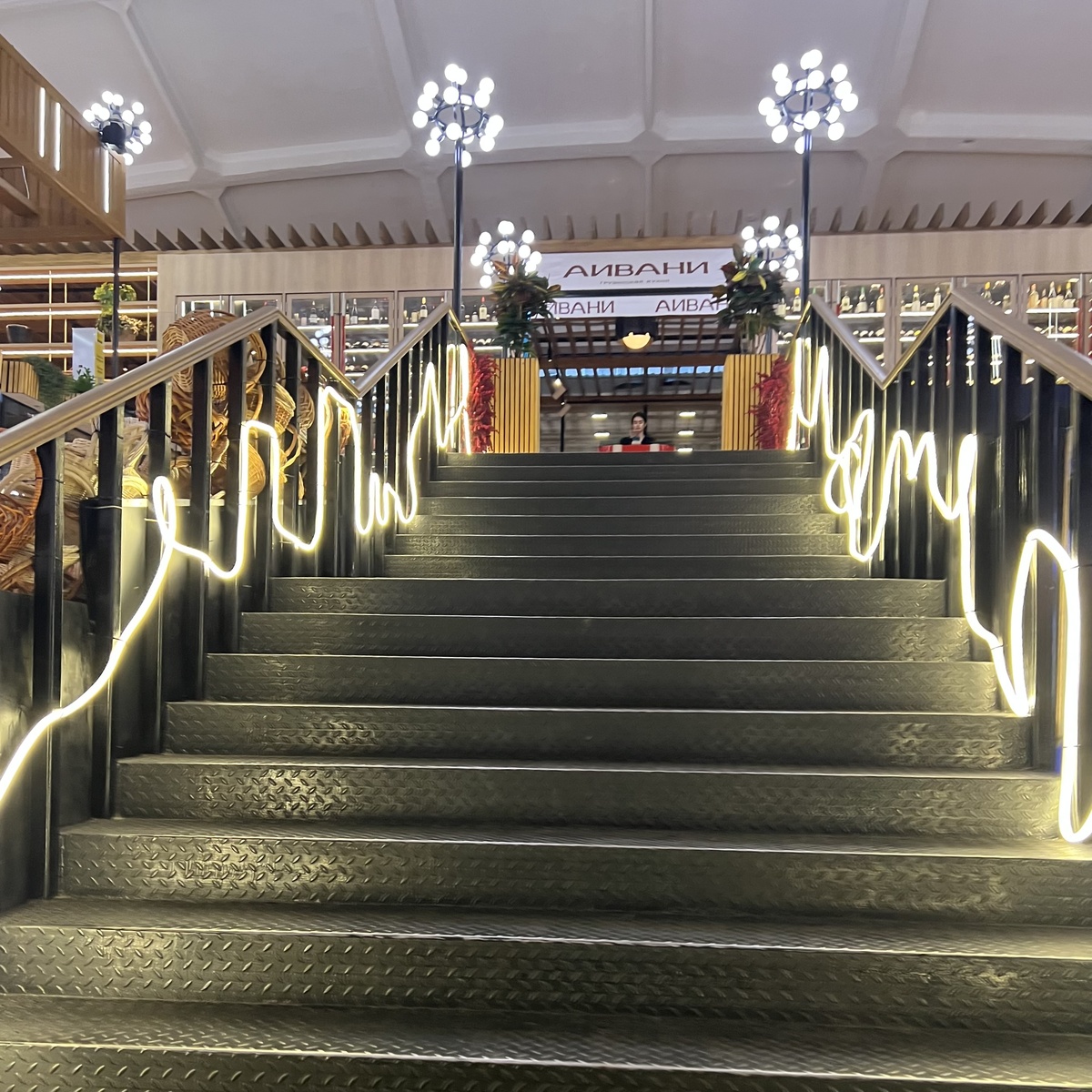 «Аивани» – очередная Грузия в Москве и очередной проект Лилии Медзмариашвили, бренд-шефа и владелицы давнего и известного ресторана «Сахли», а так же «Дарбази». Находится заведение на втором этаже «Усача» (Усачевского рынка). Вход прямо у широкой лестницы. Большая обеденная зона включает вытянутый зал внутри и вместительную веранду, она же балкон, по периметру. Кстати, в переводе с грузинского «Аивани» – это и есть «балкон». От основного рыночного пространства он отделился светлыми винными шкафами и полками. Сбоку под маркизой обосновался отсек кухни.
