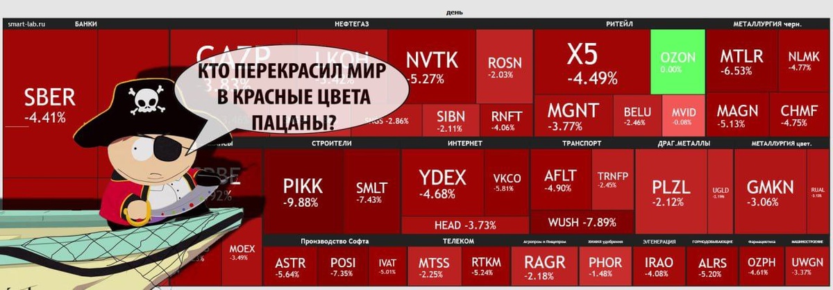 И тут всё побрилось и повалилось. Скажу коротко – ожидаемо. Сегодня индекс ММВБ обвалился на 4% пробив 2600 остановившись по окончании дневной сессии на 2561 пункте. Мы потеряли всё, что нарастили с начала недели, изначально было похоже на отскок кошки, но были и те, кто верил в рост до 2800 пунктов. Мои соболезнования этим товарищам, надеюсь вы купили хорошие бумаги и несмотря на падение они отрастут через энное количество лет. Я напомню, что до нового года не вижу позитива, сегодня вышли данные по инфляции, инфляция никак не хочет приходить в норму и опять распоясалась (делали отдельный пост). Что касается геополитики, то она никуда не делась и оказывает сильнейшее давление на фондовый рынок и результат виден невооруженным глазом. Думаю, что в связи с Новогодними праздниками негатив будет размазан за счет предпраздничных приготовлений и новогодним настроением, а полное осознание придет только в конце января – феврале, ну и там начнет выходить отчетность по большинству эмитентов, чт