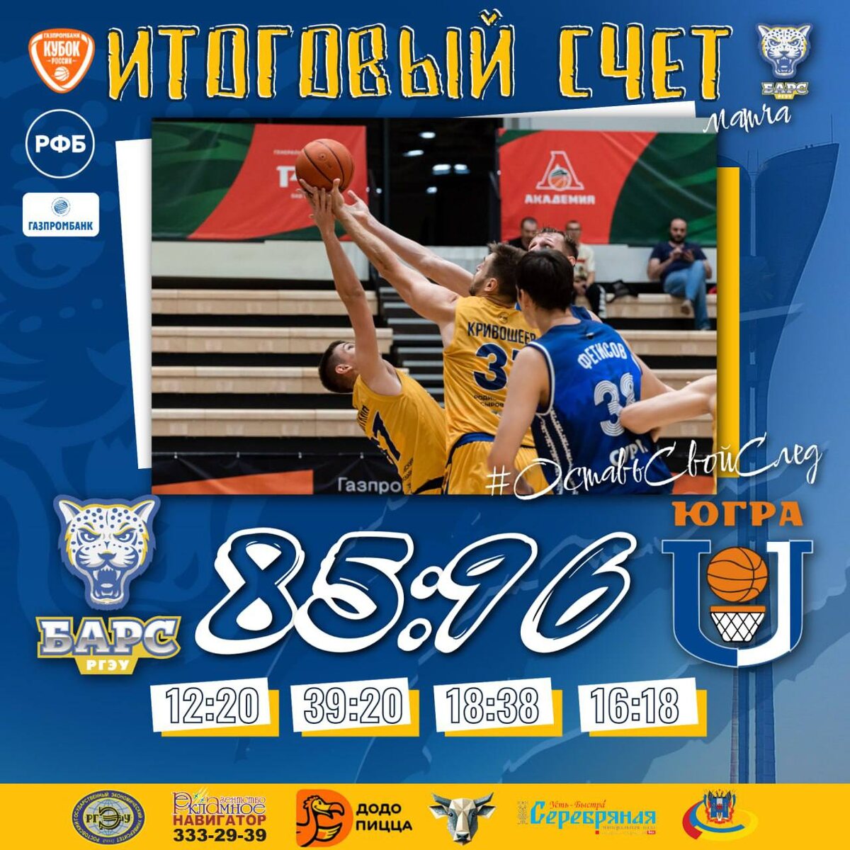 Встреча завершилась со счётом 85:96.