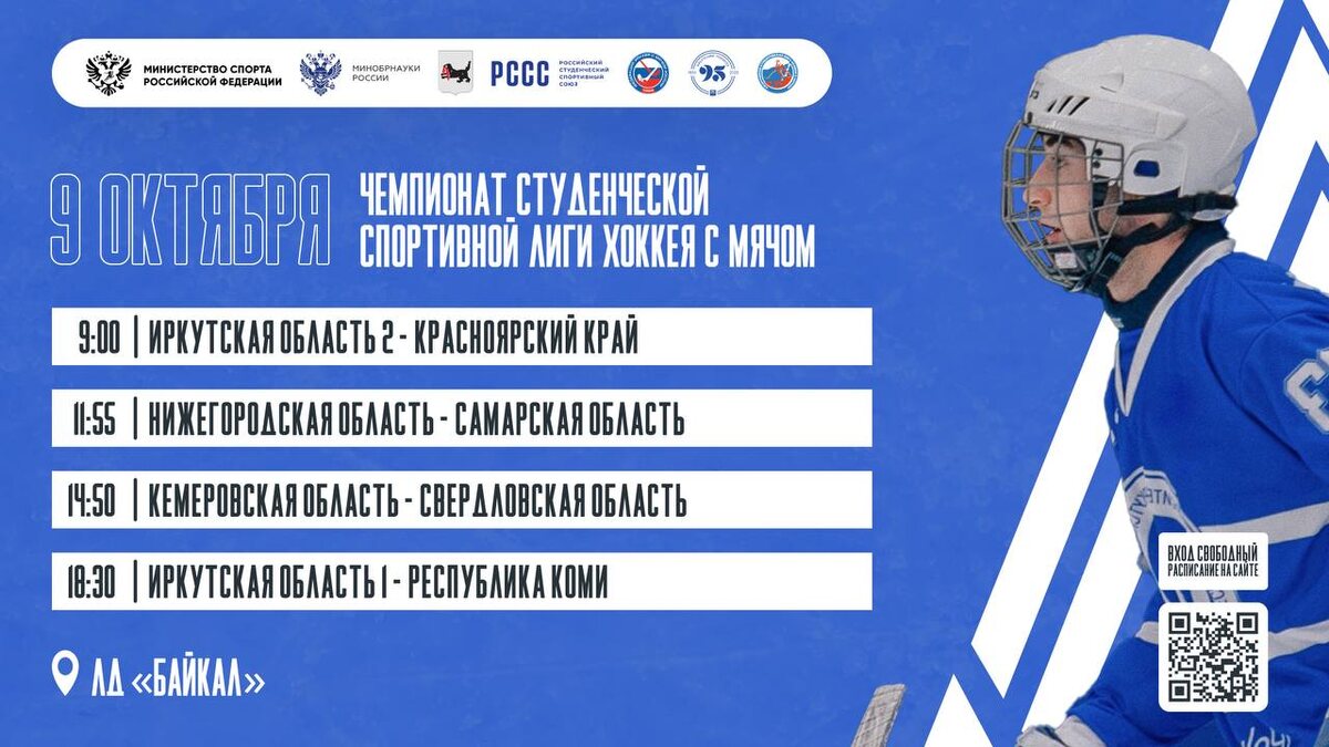 Всероссийский чемпионат студенческой спортивной лиги хоккея с мячом 🏆 Приглашаем всех поддержать команду «Иркутский политех» на трансляции и в комментариях! 💙 Трансляции: • Иркутская область 2 vs Красноярский край • Нижегородская область vs Самарская область • Кемеровская область vs Свердловская область • Иркутская область 1 vs Республика Коми Вперед, Иркутский политех! 💙