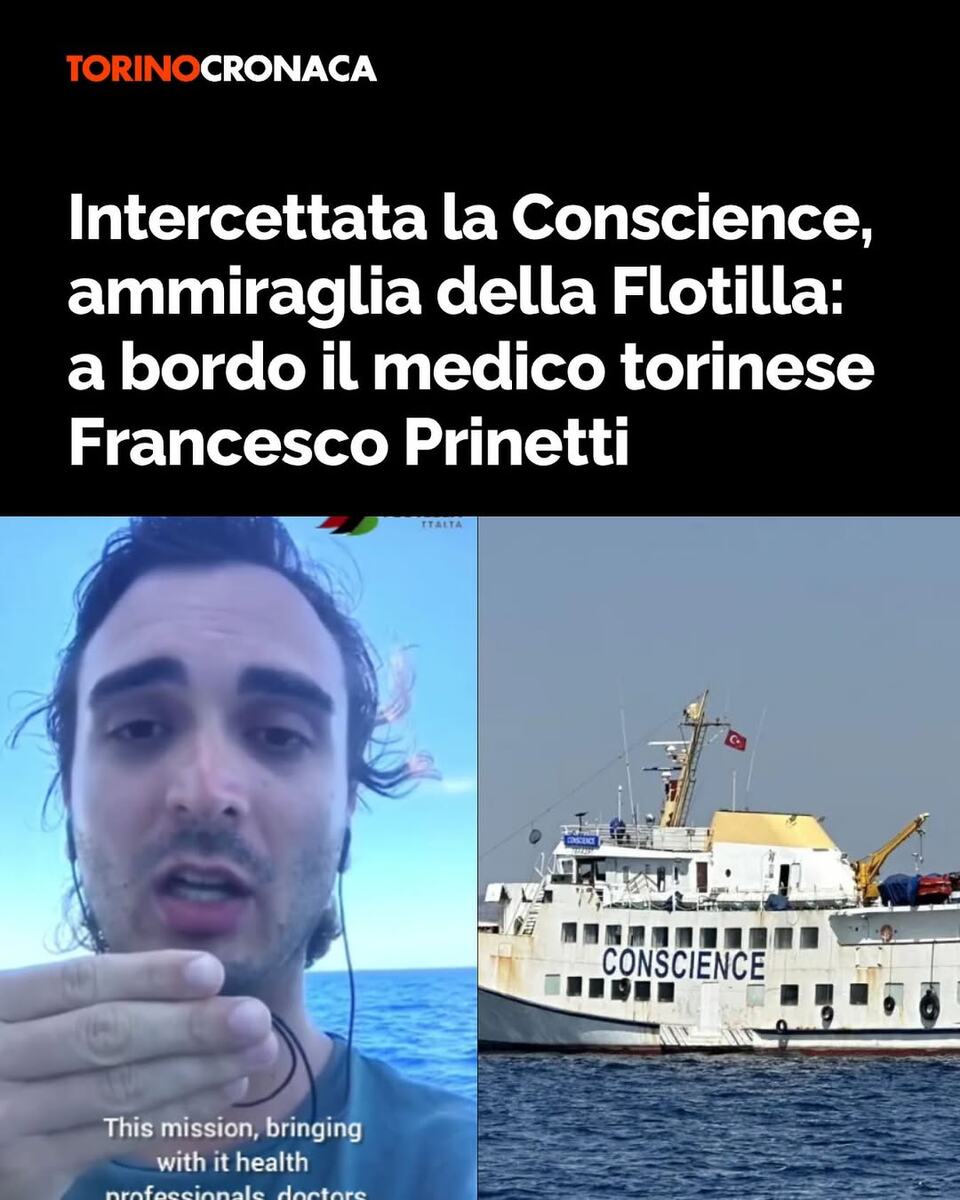 С позднего вечера вторника, 7 октября, нет никаких известий о Франческо Принетти, враче из Сеттимо-Торинезе, который находился на борту судна Conscience, входящего в состав Freedom Flotilla, направлявшейся в Газу.