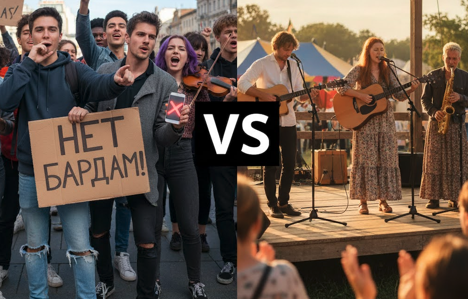 Время: Конец XX – начало XXI века. Сторона Обвинения: Поколение, достигшее сознательного возраста в период беспрецедентных социальных и экономических реформ 1990-х годов, столкнувшееся с реальностью, где идеалы разбивались о цинизм. Обвиняемые: Авторы-исполнители (Барды), чьё творчество доминировало в неофициальной советской культуре с 1960-х по 1980-е годы, формируя умы и души миллионов. Предмет Обвинения: Нанесение системного культурного и идеологического ущерба путём подмены реальной гражданской борьбы иллюзией внутренней свободы и формирование поколения, оказавшегося неспособным к активным политическим и социальным действиям в условиях открывшейся, но беспощадной демократии. Обвиняемые, используя уникальную атмосферу интимности и доверия, создали и активно продвигали идеологию "внутренней эмиграции", которая стала для миллионов моральной анестезией. В эпоху, когда историческая необх