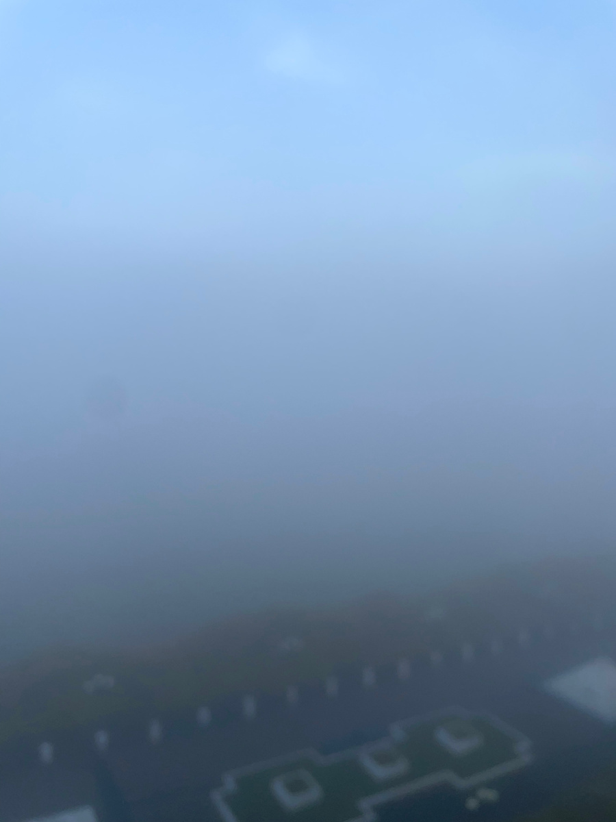 За стеклом — настоящее волшебство. Город исчез. Всё вокруг утонуло в густом сером тумане. Деревья словно растворились, дома спрятались, даже небо потеряло привычные очертания. Мир стал тихим, будто кто-то укрыл его огромным ватным пледом.