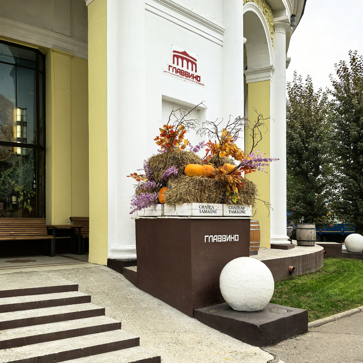 И вот эти самые осенние настроения в ГЛАВВИНО сумели уловить и передать, украсив входную группу осенними листьями и конечно же оранжевым тыквами (пусть и искусственными).