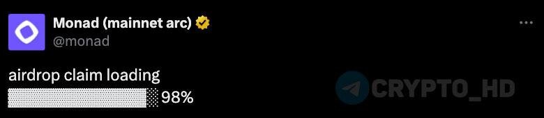 ⏳ #MON Скоро состоится эирдроп Monad (twitter)
