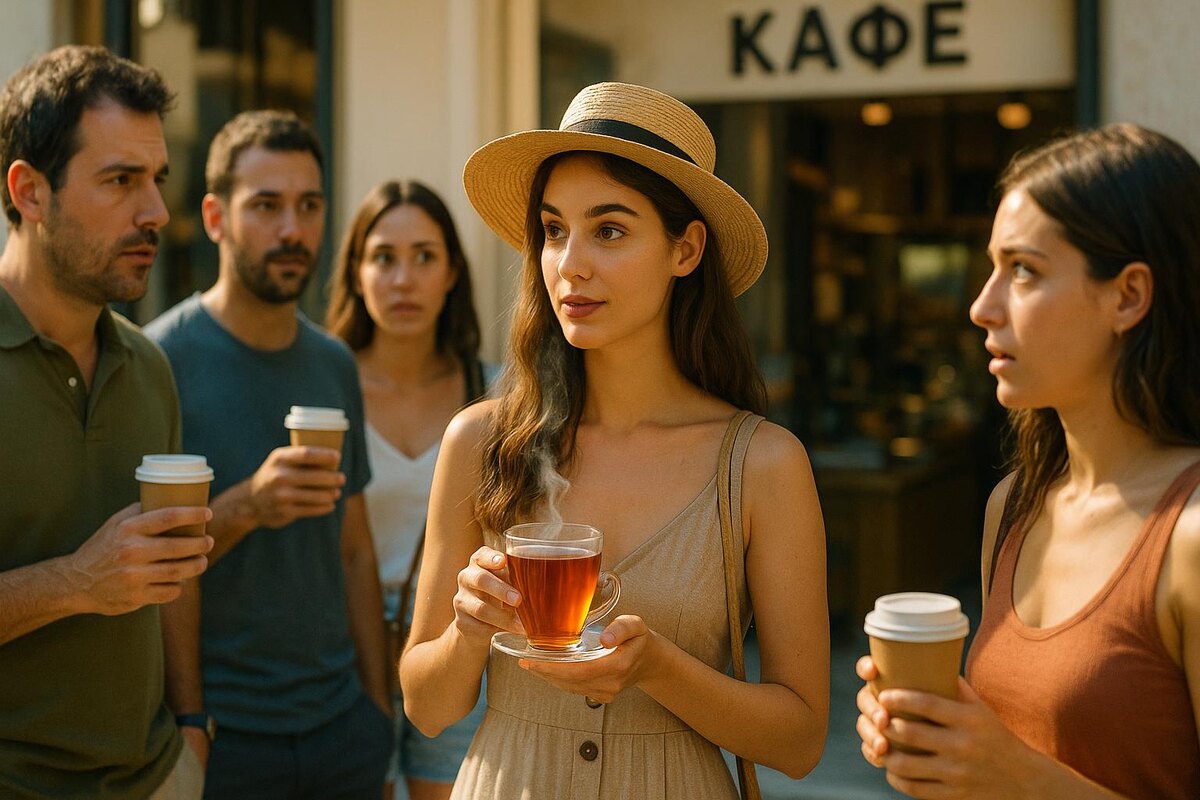 Сценка из греческой жизни: ты стоишь в очереди за стойкой модной кофейни в центре Афин, вокруг — стройные ряды людей со стаканчиками греческого кофе в руках. Твоя очередь. Бариста улыбается: — Что будете? — Чай, пожалуйста. Пауза. Бариста моргает. Остальная очередь, кажется, тоже на секунду приумолкла: человек перед вами взял кофе, человек за вами возьмёт кофе, а вы… чай? Почему? Ты заболела? Так я осознала: в Греции кофе — не просто утренний ритуал, а символ твоей социализации. Здесь его пьёт даже младенец (почти), а на слово “чай” смотрят подозрительно, словно ты только что попросила греческий салат без феты. Греки не просто пьют кофе, они живут им руку. На улицах, в парках, на балконах и даже на пляже: всегда пластиковый стаканчик с чем-то бодрящим, часто еще и со льдом. Среди моих знакомых был парень, который сказал: “Я не просыпаюсь, пока не выпью хотя бы два фраппе подряд. Один — чтобы открыть глаза, второй — чтобы включить мозги.” Кофе тут — способ узнать новости, обсудить жизнь